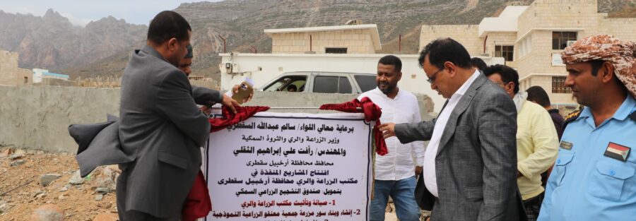 افتتح وزير الزراعة والري والثروة السمكية، اللواء/ سالم السقطري، اليوم، المشاريع المُنفذه في مكتب الزراعة والري بمحافظ أرخبيل سقطرى، في اطار زيارته الحالية للأطلاع على سير العمل في القطاعات الزراعية والسمكية.