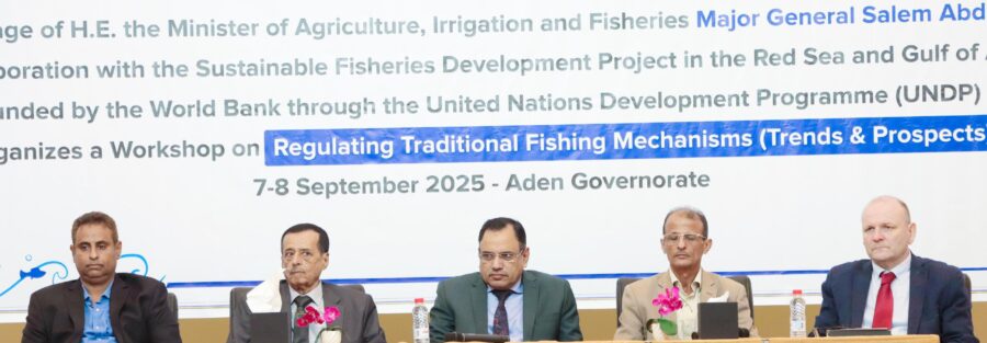 دشن معالي وزير الزراعة والري والثروة السمكية اللواء سالم عبدالله السقطري، صباح اليوم في العاصمة عدن ورشة العمل الخاصة بتحديث لائحة تنظيم آليات الصيد التقليدي-الاتجاهات والآفاق.والتي نظمتها الوزارة بالتعاون مع البنك الدولي عبر برنامج الأمم المتحدة الإنمائي،وفي إطار مشروع التنمية المستدامة لمصائد الأسماك في البحر الأحمر وخليج عدن.