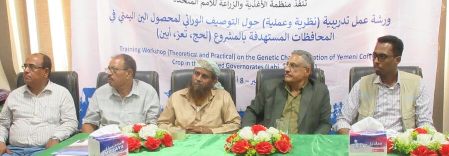 اختتمت صباح اليوم في العاصمة عدن فعاليات ورشة التوصيف الوراثي لمحصول البن اليمني،التي نظمتها منظمة الأغذية والزراعة للأمم المتحدة (الفاو) بالتنسيق مع وزارة الزراعة والري والثروة السمكية والهيئة العامة للبحوث والإرشاد الزراعي،وبرعاية معالي وزير الزراعة والري والثروة السمكية اللواء سالم عبدالله السقطري،ونائب الممثل المقيم لمنظمة الفاو في اليمن،وذلك في إطار مشروع الدعم الفني لتحسين وإنتاج البن.