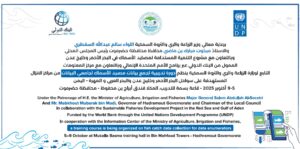 ويقام البرنامج التدريبي بالتعاون مع مركز المعلومات التابع لوزارة الزراعة والري والثروة السمكية، ويستهدف عدداً من جامعي البيانات من مراكز الإنزال السمكي الواقعة على سواحل البحر الأحمر وخليج عدن والبحر العربي في اليمن، خلال الفترة من 5 إلى 9 أكتوبر 2025م.