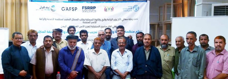 برعاية معالي وزير الزراعة والري والثروة السمكية اللواء سالم السقطري، اختتمت اليوم بالعاصمة عدن، أعمال ورشة العمل التدريبية لإدارة الحدائق المنزلية لتدريب مدربين، أقامتها منظمة الأغذية والزراعة للأمم المتحدة (FAO)، ومجموعة البنك الدولي، في إطار مشروع الاستجابة لتعزيز الأمن الغذائي في اليمن.