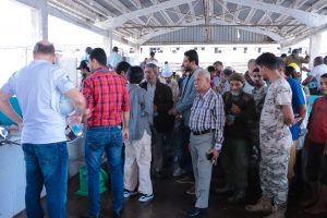 رافق الوفد خلال الزيارة هلينا نايبر من البنك الدولي ومدير عام التخطيط في الوزارة م.انور السعدي ومدير عام مراكز الانزال السمكي في الهيئة مكافح عبدالله ومدير مركز الدوكيار م.راشد