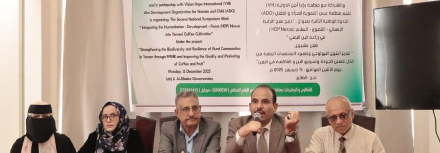 تحت رعاية معالي وزير الزراعة والري والثروة السمكية اللواء سالم عبدالله السقطري، انطلقت صباح اليوم في العاصمة عدن الندوة الوطنية الثانية بعنوان: “دمج نهج الترابط الثلاثي (الإنساني – التنموي – السلام) في تطوير زراعة البن اليمني”، والتي نظّمتها منظمة عبس التنموية، بالتعاون مع وزارة الزراعة والري والثروة السمكية، وبالشراكة مع منظمة رؤيا أمل الدولية، وبتمويل من الوزارة الاتحادية للتعاون الاقتصادي والتنمية الألمانية (BMZ)، وذلك ضمن مشروع: “تعزيز التنوع البيولوجي وقدرة المجتمعات الريفية في اليمن على الصمود من خلال إدارة الموارد الطبيعية والريفية، وتحسين جودة وتسويق البن والفواكه”، وبحضور عدد من المسؤولين وممثلي المنظمات الدولية والمحلية.