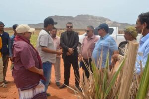 اطلعت اللجنة الوزارية المكلفة من وزير الزراعة والري اللواء / سالم عبدالله السقطري على ماحوته المزرعة النموذجية بمحافظة سقطرى