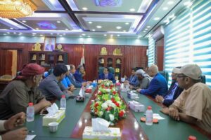 وفي بداية اللقاء رحب الوكيل عبدالملك ناجي بالحاضرين ونقل لهم تحيات معالي وزير الزراعة والري والثروة السمكية اللواء سالم عبدالله السقطري وحرصه الشديد على الإطلاع على احتياج المحافظة في قطاع الزراعة والري لتنفيذها في الفترة القادمة.