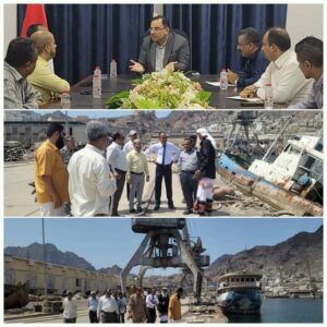 كما ناقش اللقاء الأعمال التي قامت بها شركة عدن برايدرس المحدودة المتعهده بإنتشال وتقطيع وإخراج السفن الغارقة من ميناء الاصطياد وذلك بعد فوزها بالمزاد العلني الذي تم الإعلان عليه من قبل قاضي المحكمة التجارية في القضية المرفوعة أمامه والتي صدر حكم ابتدائي فيها مطلع العام الجاري.