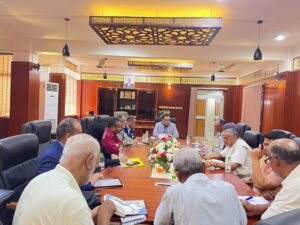 ناقش معالي وزير الزراعة والري والثروة السمكية اللواء / سالم عبدالله السقطري مع فريق البرنامج الانمائي للأمم المتحدة برئاسة توني روبرس رئيس المشروع الأوضاع المتعلقة بمشروع إعادة تأهيل ميناء الاصطياد السمكي بمنطقة حجيف بالعاصمة عدن.