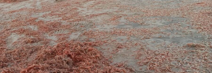 وافادت د. هناء رشيد، في تصريح صحفي لوسائل الإعلام، انه تم نزول أعضاء اللجنة البحثيه، برئاسة، مدير فرع الهيئة العامة للإبحاث وعلوم البحار للأحياء المائية، صبري لجرب، بمعية عدد من مختصي هيئة مصائد البحر العربي، وجرى النزول الى سواحل الشحير، موقع نفوق (الجمبري)، حيت تم تأكيد الظاهرة التي أمتدت على مساحة كيلو ونصف تقريبآ، والتي أنتشر فيها (الجمبري)، باحجام صغيرة يتراوح حجمها من 4-5 سم.