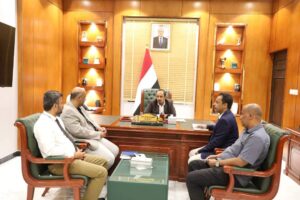 بحث محافظ محافظة حضرموت، الأستاذ/ مبخوت مبارك بن ماضي، اليوم، بالمكلا، مع وكيل وزارة الزراعة والري والثروة السمكية لقطاع خدمات الأنتاج والتسويق السمكي، الأستاذ/ غازي أحمد لحمر، الأجراءات المتخذة لتنفيذ قرارات الوزارة في ضبط آلية تنظيم لوائح أصطياد الأسماك وتسويقها، وتعاميم الوزارة ذات الصلة، وتقييم مدى الألتزام ببنودها.